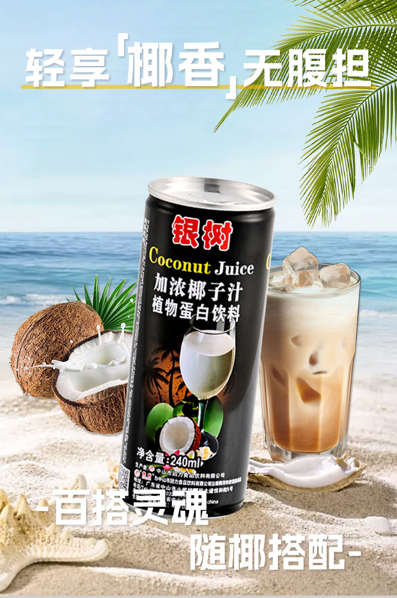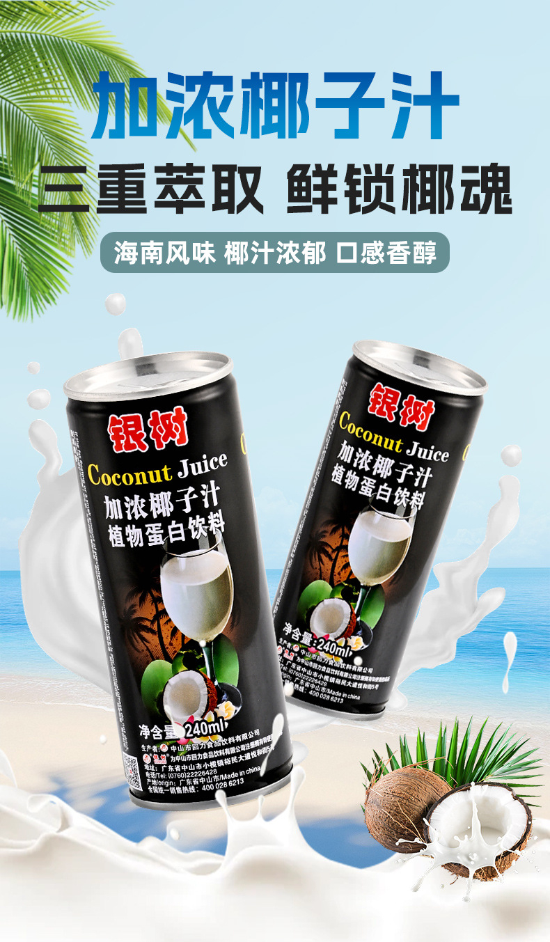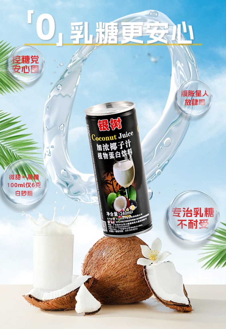 240ml银树加浓椰子汁海南风味0乳糖网红饮料植物蛋白椰汁饮料加盟