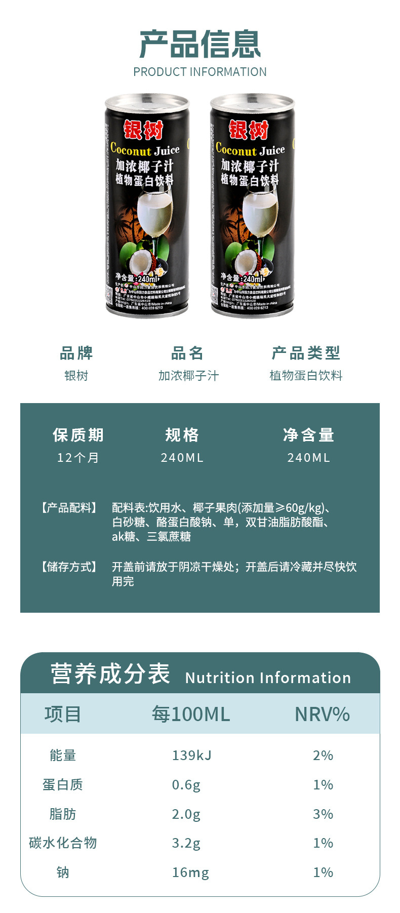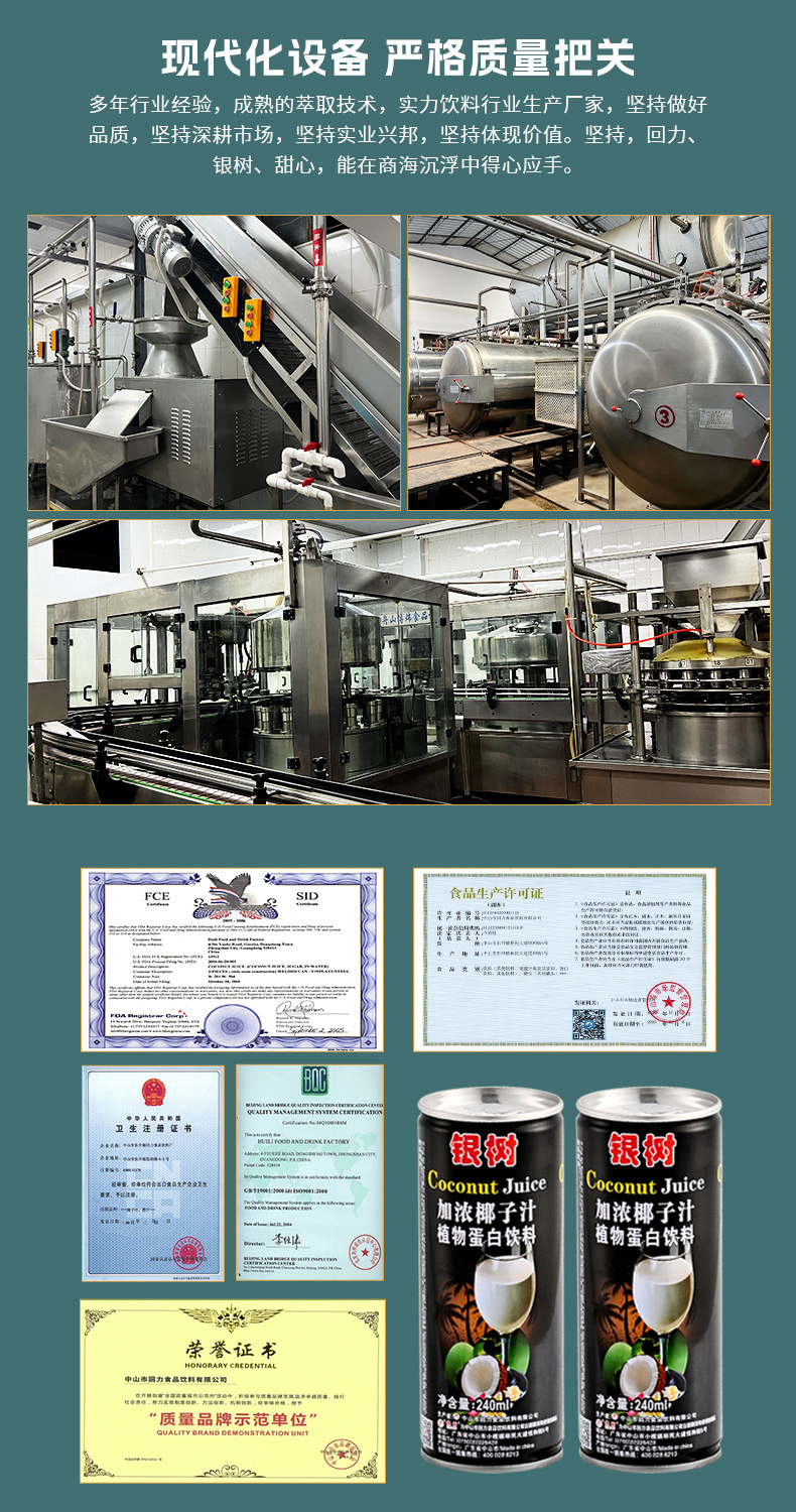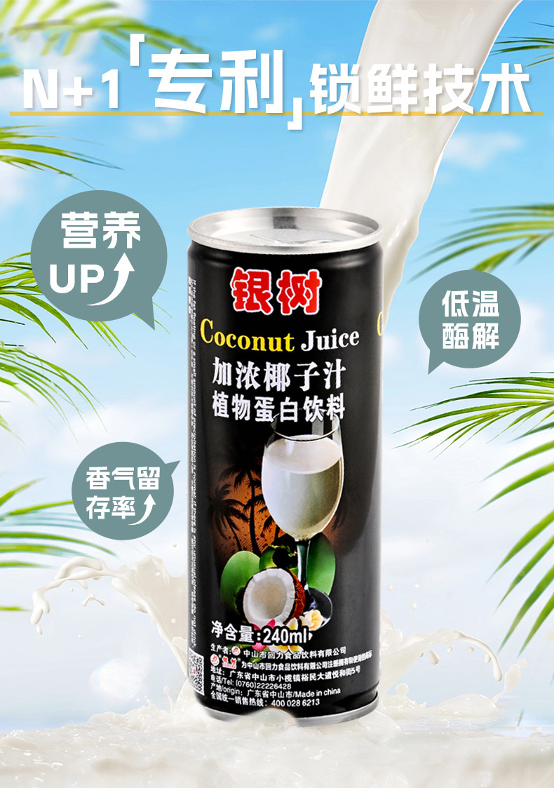 240ml银树加浓椰子汁海南风味0乳糖网红饮料植物蛋白椰汁饮料加盟